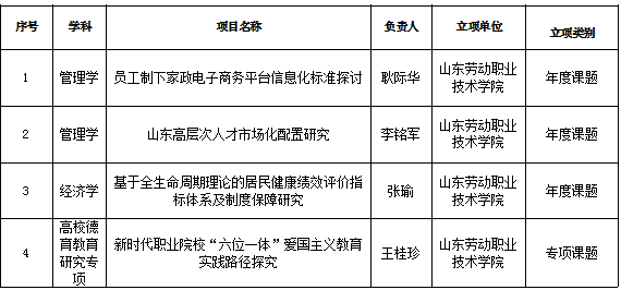 2021年度山东省人文社会科学课题经山东省人文社会科学课题管理办公室组织专家评审、网站公示等程序,现已公布立项课题名单。其中,我院申报的4项课题获得立项。