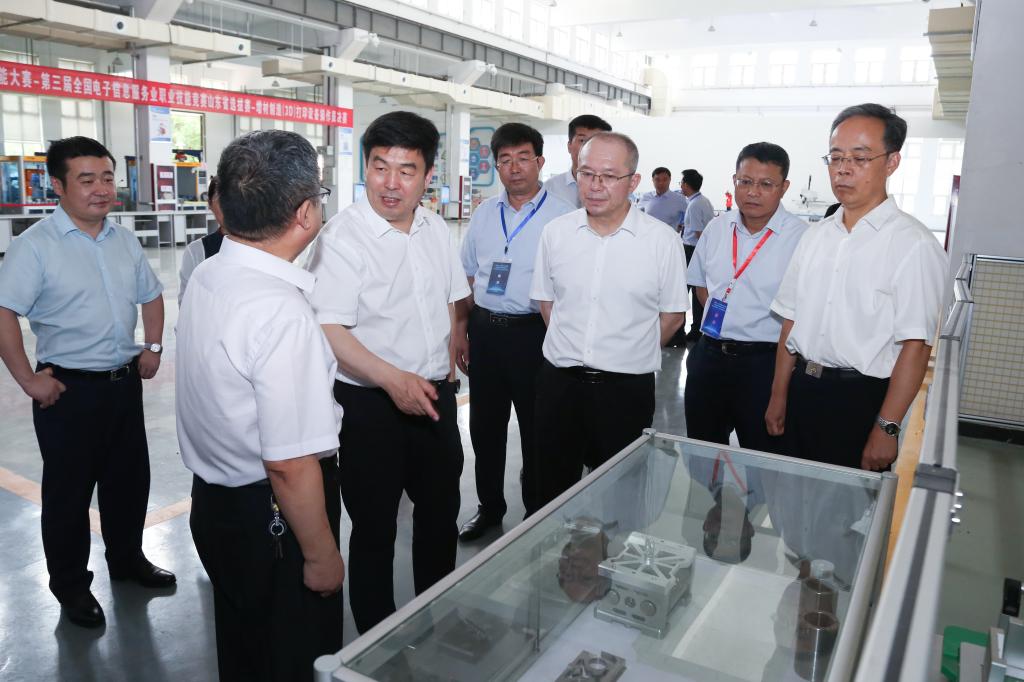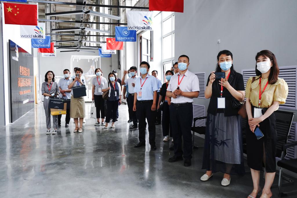 与会委员分三组参观了学院世界技能大赛CAD机械设计项目中国集训基地、山东省公共实训基地高端实训中心和综合实训中心、汽车工程系实训中心。在参观时,邢顺峰对学院近年来在技能大赛领域取得的成绩表示肯定,他强调,职业教育要坚持“走出去”,加强与企业和兄弟院校的沟通交流。高职院校要真正面向市场、面向社会,建设专业群、服务群,与企业开展高水平合作。